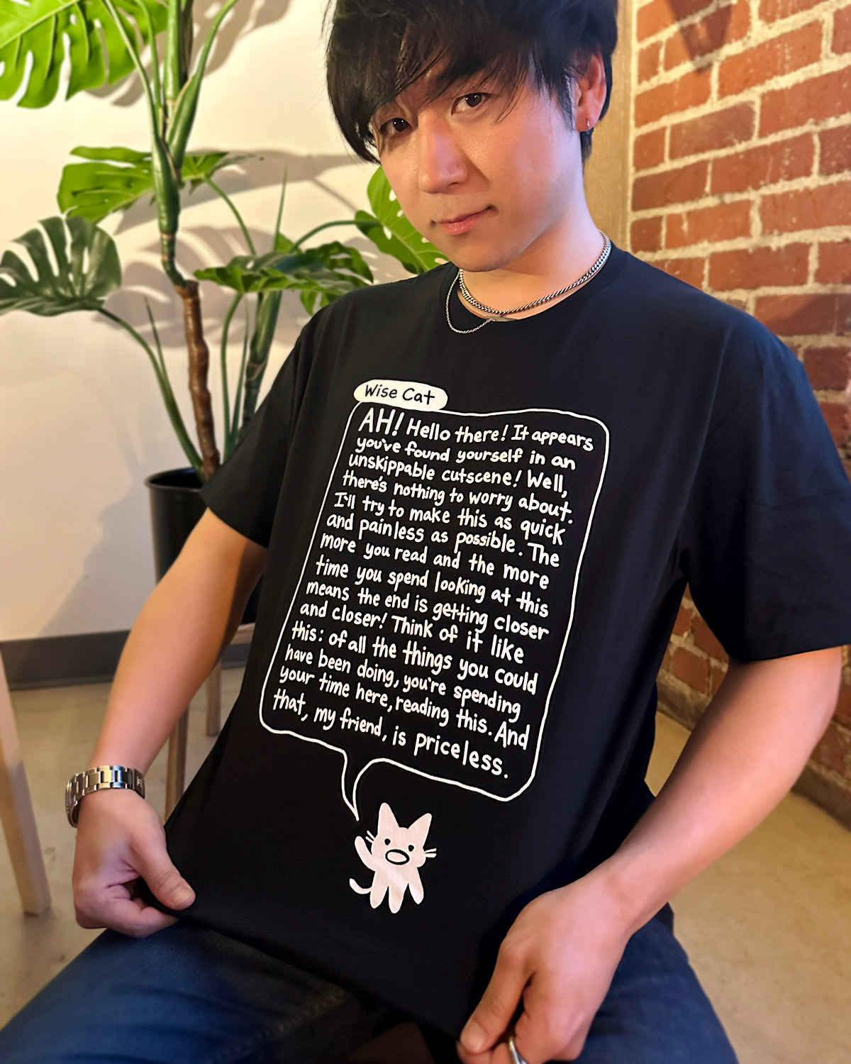 The oversized tee fit is on the roomier side, with slightly dropped shoulders, longer sleeve length, and overall more relaxed on the body. The 100% cotton fabric is thick but still breathable enough to stay cool in warmer weather.